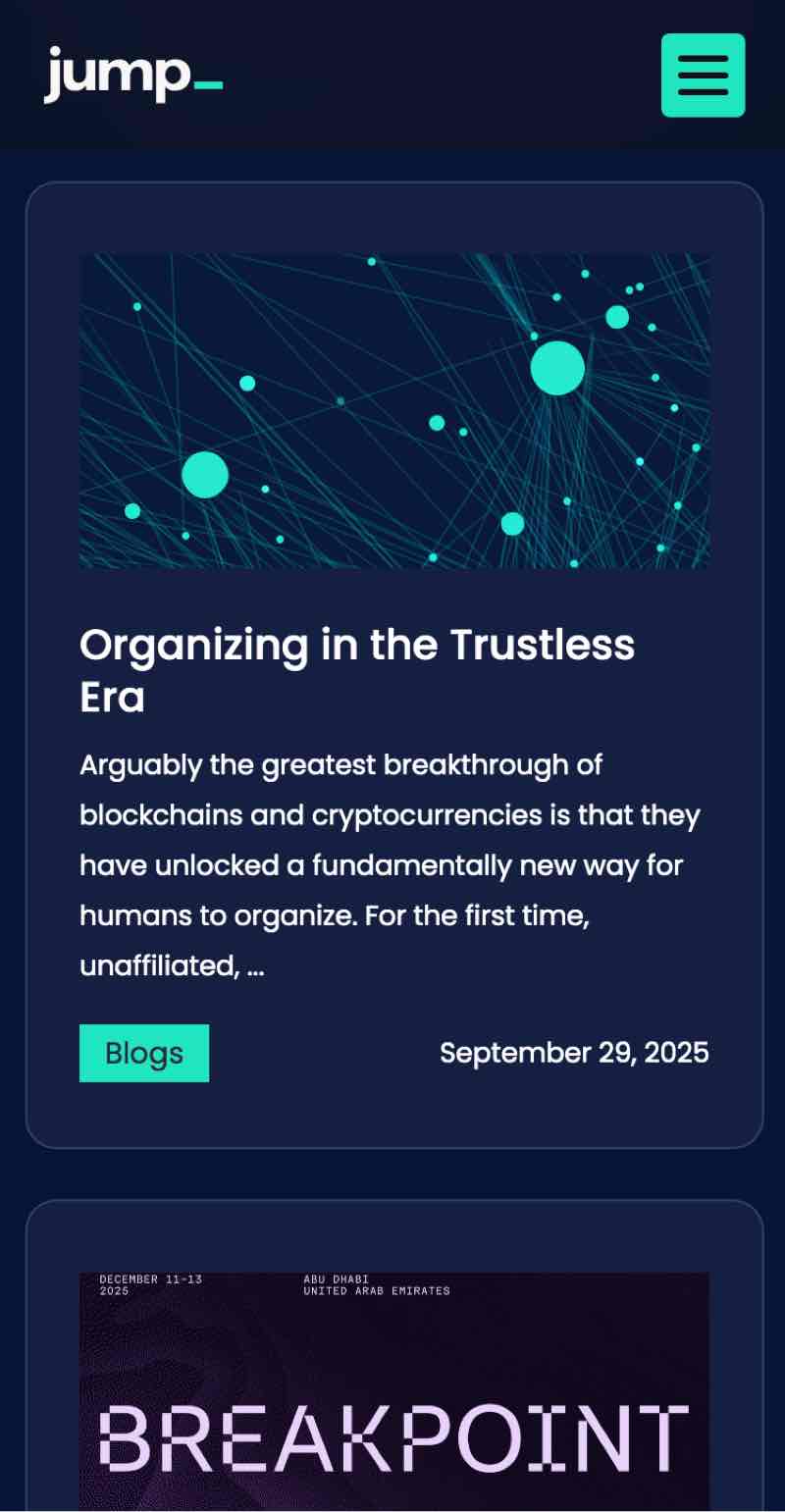 Under the hood, the site was built to scale — allowing Jump Crypto’s team to evolve content over time while maintaining consistency across every page. The result is a platform that feels as considered and reliable as the firm itself.
